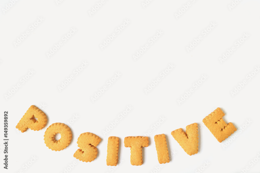 Top View Of Alphabet Shaped Biscuits Spelling The Word Positive Isolated On White Background Stock Photo Adobe Stock
